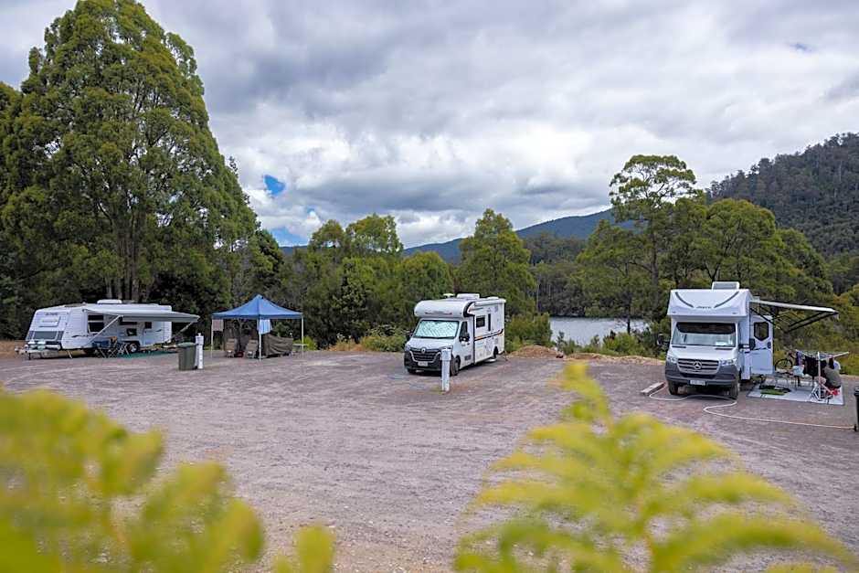 These powered sites are located in front of Lake Rosebery, with a beautiful view. These sites are designed for only caravans and have a gravel surface. There is a shared amenities block close by for use.