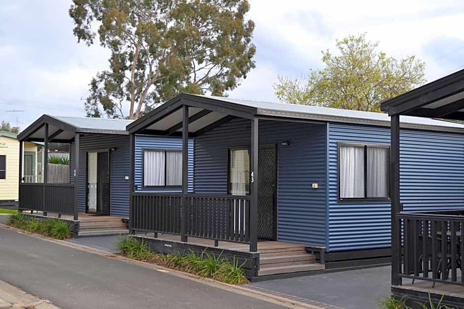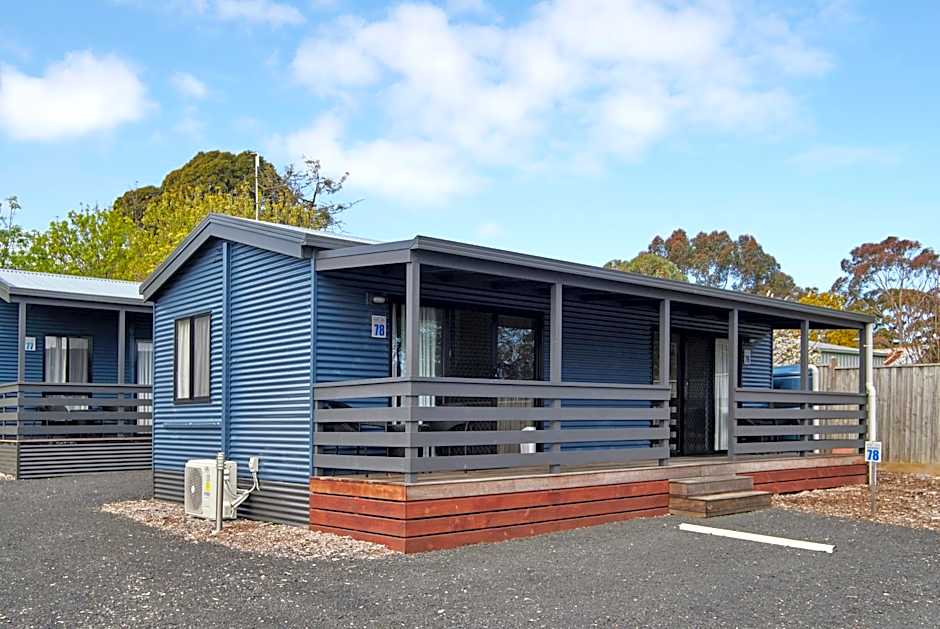 Renovated in May 2017, this villa features one large bedroom, a king bed, TV in the bedroom, private bathroom, kitchen, lounge area, small table and chairs, large fridge, microwave, split system heating and cooling and electric blanket. Includes tea/coffee making facilities, free WiFi, extra roll away bed if needed. Guests can relax on the outdoor deck, and enjoy access to all our park facilities, including our games room, outdoor bbq area and saltwater swimming pool.