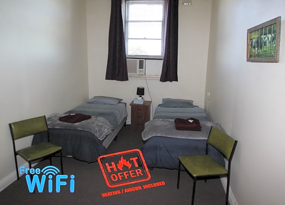 This twin room is air-conditioned and features a shared bathroom, carpeted floors and a private entrance. The unit offers 2 beds.