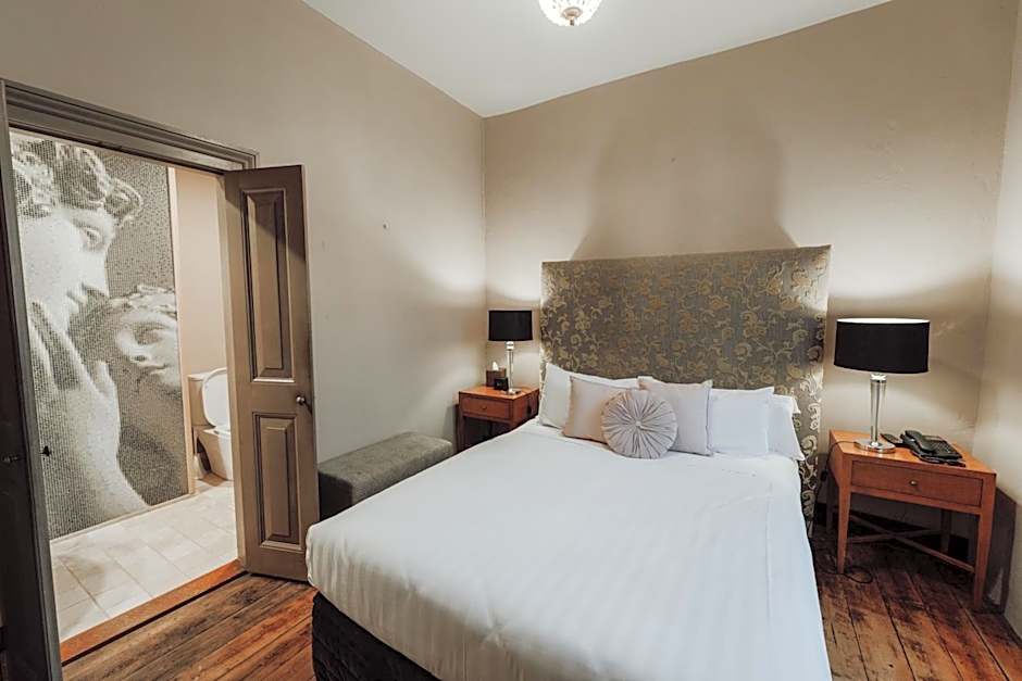 These compact rooms can accommodate up to 2 guests in a queen bed. Each room has an en suite with shower. Some also feature a shared outdoor balcony, overlooking the front gardens of the hotel.