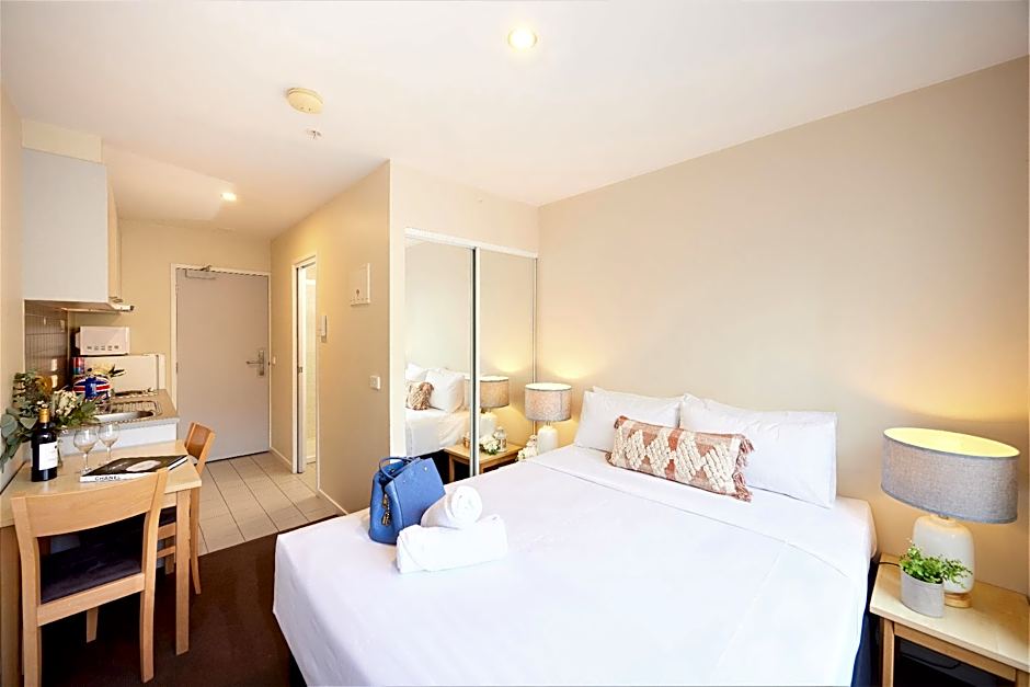 Nestled at 488 Swanston Street, the stay puts Melbourne’s urban rhythm within easy reach, inviting travelers to step out for daytime discoveries and return to a space that blends apartment-style living with hotel services.