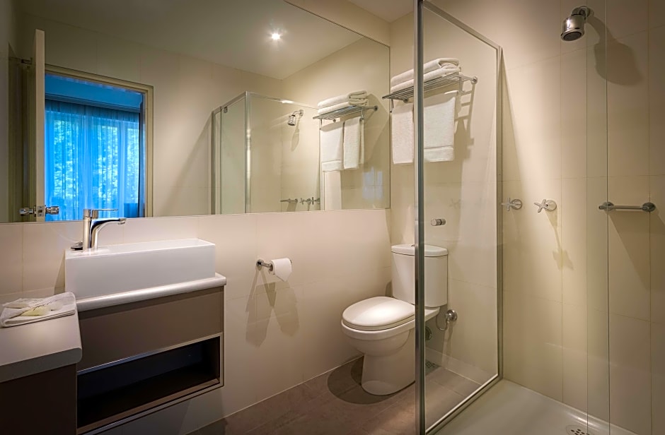 The grounds set a relaxed, garden-style scene with a picnic area to enjoy a sunny sits-down meal or a quiet moment outdoors. Handy extras include free beach umbrellas and beach chairs/loungers, perfect for sunny Melbourne days. For those who want to swing a club, a golf course is listed as an extra charge, offering a little sport to balance sightseeing.