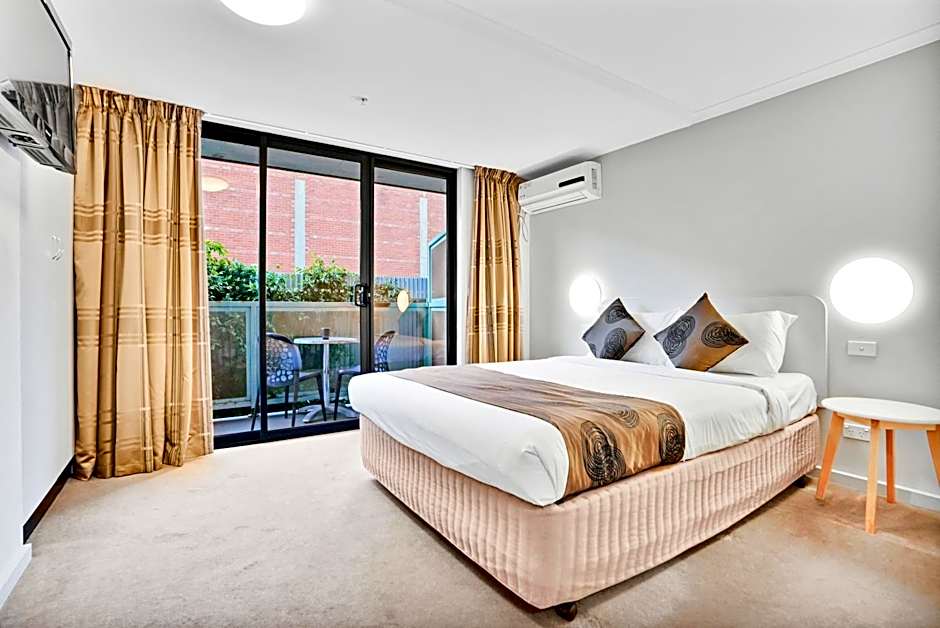 This spacious suite, overlooks Lygon Street. It includes a queen-sized bed, an private bathroom, a kitchenette and a spacious balcony.
