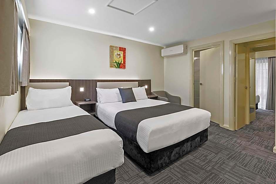 The Quality Hotel Melbourne Airport offers a variety of room types. They have Family Rooms, Deluxe Two-Bedroom Family Suites, Executive Twin Rooms, Superior Studio Rooms, Family Interconnecting Rooms, Twin Rooms, and Two-Bedroom Family Suites. Smoking is not allowed in any of the rooms. The rooms accommodate varying numbers of adults and children, and the beds range from twin beds to double and queen size beds.