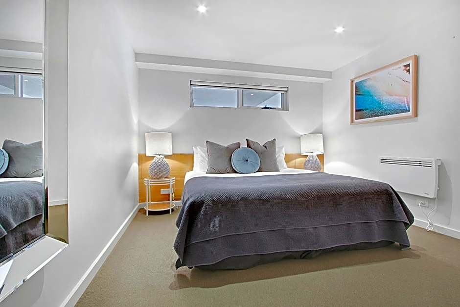 A luxuriously appointed ground floor apartment featuring a separate living area, king size latex bed and double shower. This room also features a private patio courtyard equipped with BBQ.