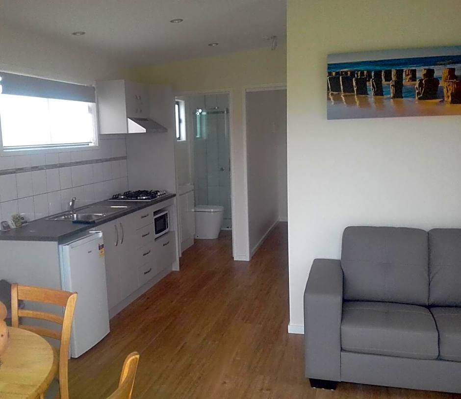 This air-conditioned cottage features a fully equipped kitchen, a dining setting and a lounge area with a sofa, flat-screen TV and DVD player. It also includes a private toilet, shower and car parking.
