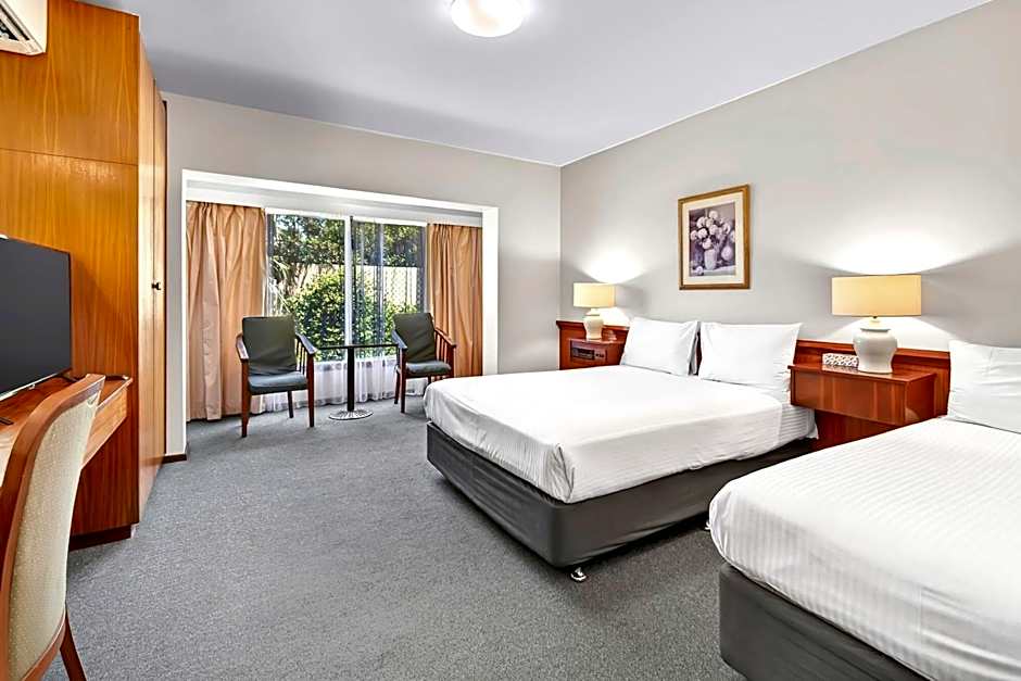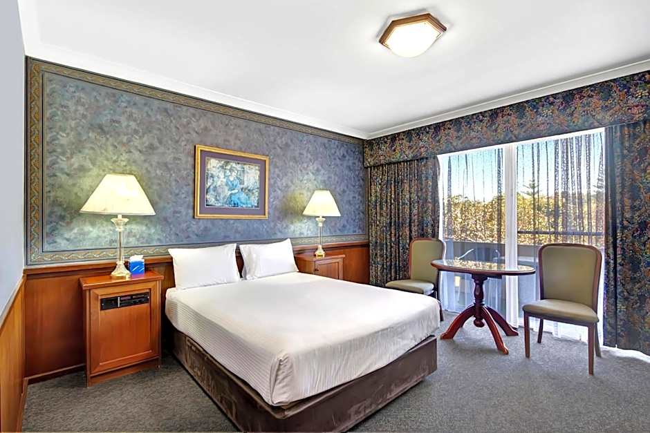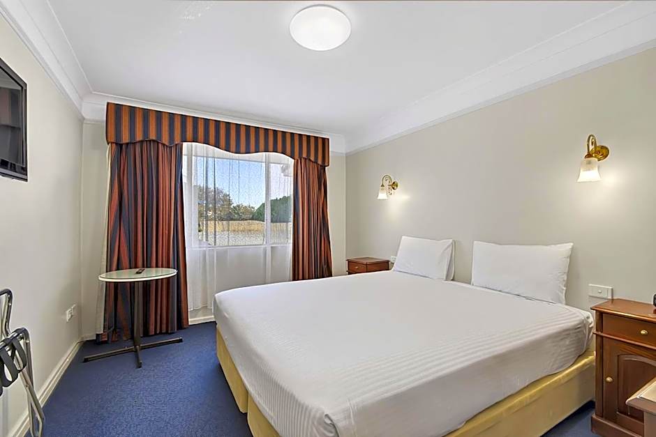 This room includes a king size bed and Federation style furniture. There is a separate writing desk and a private bathroom with a shower and hairdryer. A TV. Also included is a microwave, toaster and tea and coffee making facilities. These ground floor rooms have access to a shared courtyard.