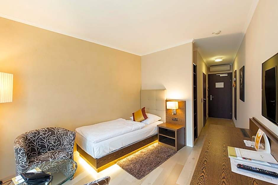 Available in modern or classic style. Decorated in a modern or classic style, this suite with a size between 131 ft² and 197 ft² features a balcony with views on the Ruinse Castle or the Vienna Woods, and a modern bathroom. Some of them do have Balcony. Decorated in a modern or classic style (monument protection), these rooms feature modern bathrooms. The modern rooms come with adjustable air condition, wooden floors and French windows, while the classic rooms feature carpet floors, Biedermeier chandelier and they come partly with balcony. The classic double rooms are under monument protection and do not offer air-condition.