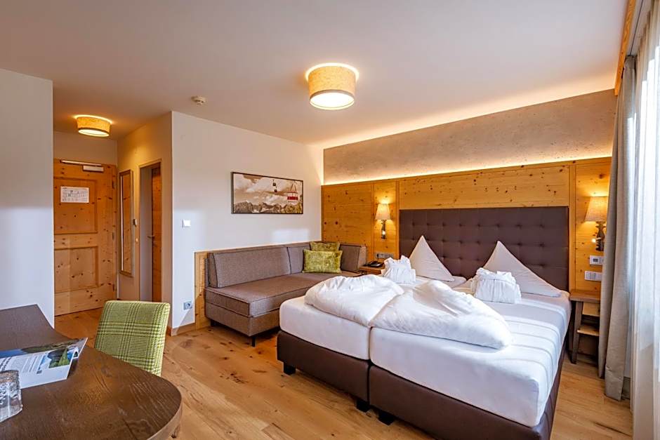 The Alpen Glück Hotel Kirchberger Hof offers a variety of room types. They have Single Rooms that accommodate 1 adult with a Twin bed, Family Rooms suitable for 2 adults and 1 or 2 children with a Queen size bed and a Sofa bed, a Triple Room that accommodates 3 adults with a Queen size bed and a Sofa bed, and Double Rooms for 2 adults with a Queen size bed. Smoking is not allowed in any of the rooms. All room sizes range from 183 sqft to 323 sqft.