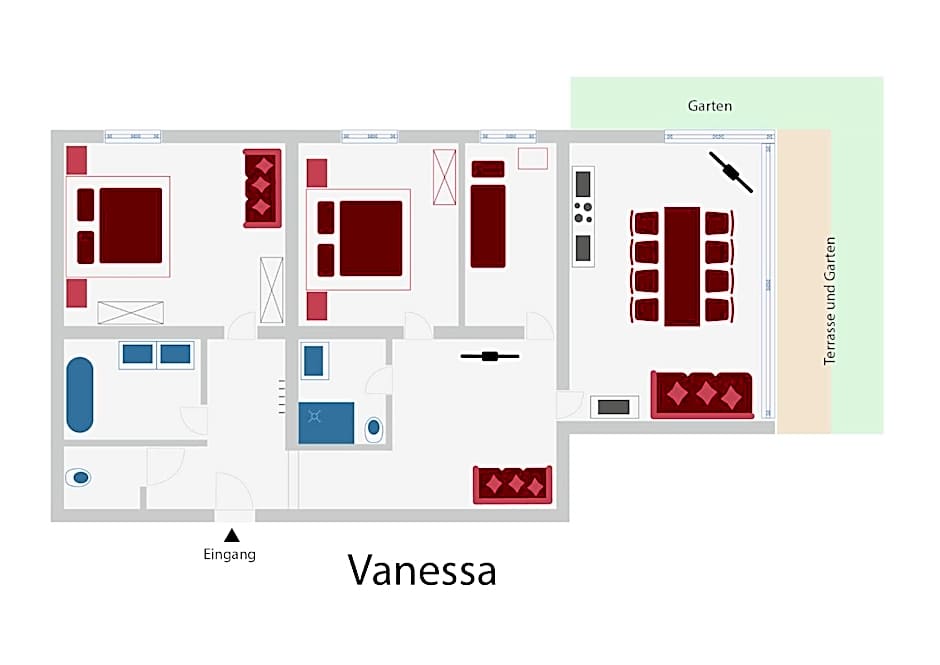 Guests will have a special experience as this apartment features a sauna. This apartment is consisted of of 1 living room, 2 separate bedrooms and 2 bathrooms with a shower and free toiletries. Guests will find a stovetop, a refrigerator, a dishwasher and kitchenware in the well-equipped kitchen. The apartment also has a barbecue. The apartment offers a flat-screen TV with streaming services, a washing machine, soundproof walls, a tea and coffee maker as well as garden views. The unit offers 4 beds.