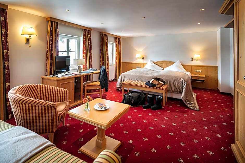 For dining options, the hotel has the Martinsstube restaurant which offers a family-friendly and traditional ambiance, serving local cuisine.