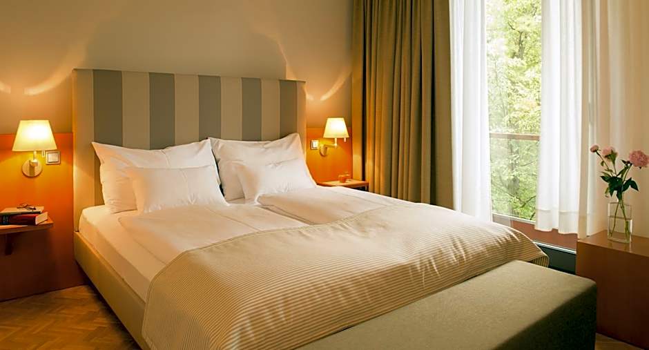 Spacious, air-conditioned double room with views of the forest or garden, double bed (180 x 79 in). Includes a walk-in wardrobe, separate toilet, sofa bed, and mini-bar Pool-facing rooms come with a balcony; available on request for an additional charge