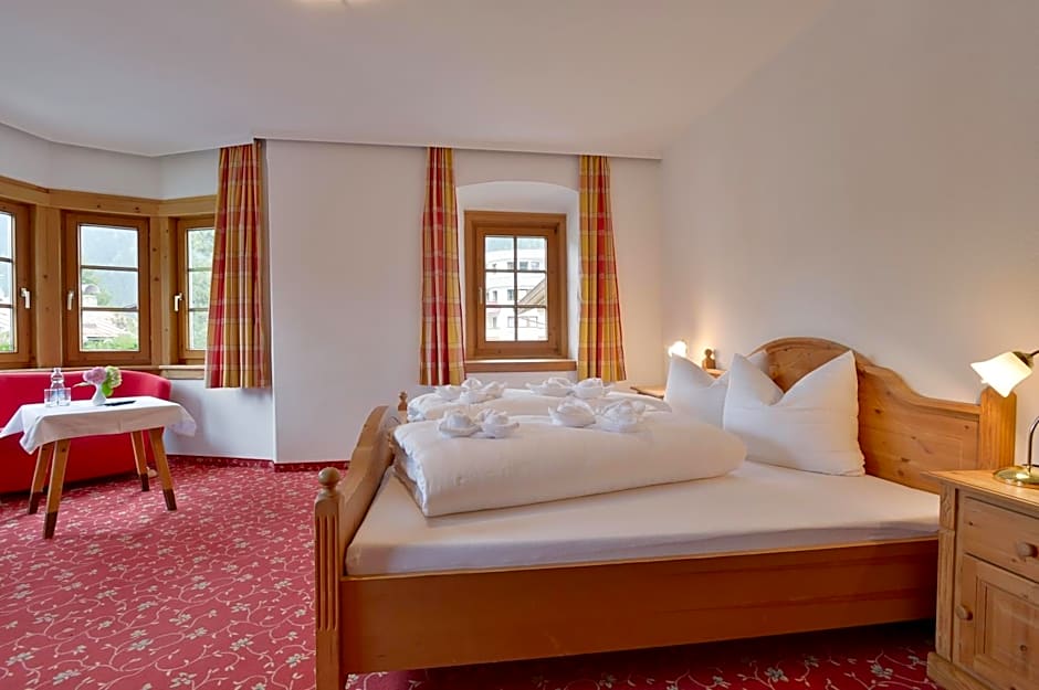 The Posthotel Mayrhofen offers a variety of rooms including standard rooms, suites, and family rooms. Occupancy ranges from single occupancy to rooms that can accommodate up to four guests. Rooms vary in size with different bed configurations, from twin beds to king-sized beds, and offer both smoking and non-smoking options.
