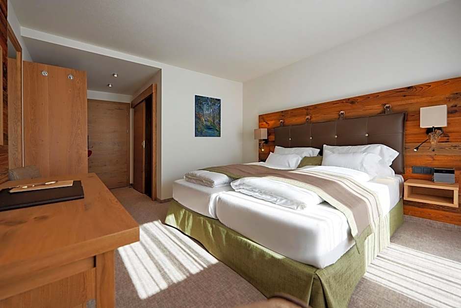 These spacious double rooms are decorated in alpine style and are located in the corners of the building.