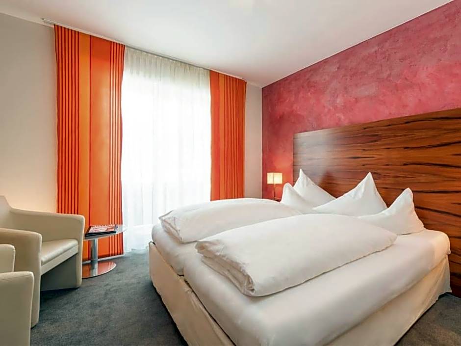 Spacious rooms with a balcony, cable TV, and a bathroom with hairdryer and make-up mirror.