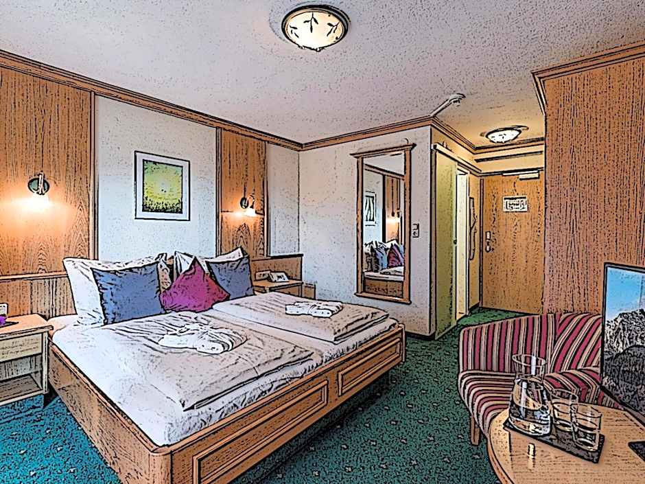 Providing free toiletries and bathrobes, this double room includes a private bathroom with a bath and a hairdryer. The double room features parquet floors, a seating area with a flat-screen TV, soundproof walls, a wardrobe as well as mountain views. The unit offers 1 bed.