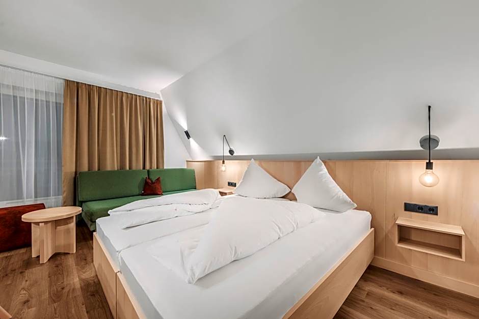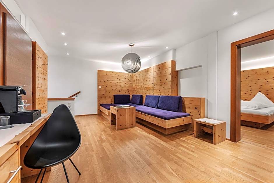 Featuring a spacious terrace with panoramic mountain views, this large and elegant suite is decorated with wooden floors, and wooden furniture made from sustainable materials. The suite faces South.