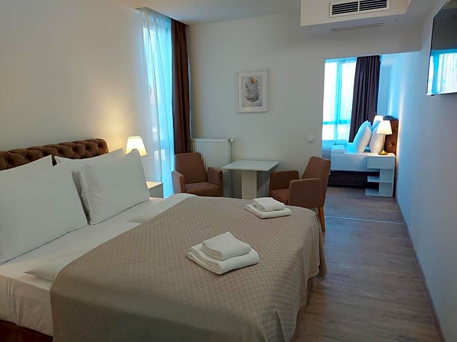 The double room provides a wardrobe, parquet floors, as well as a private bathroom boasting a bath or a shower and a hairdryer. The air-conditioned double room features a flat-screen TV with satellite channels, a tea and coffee maker, a seating area, a dining area as well as a quiet street view. The unit has 1 bed.
