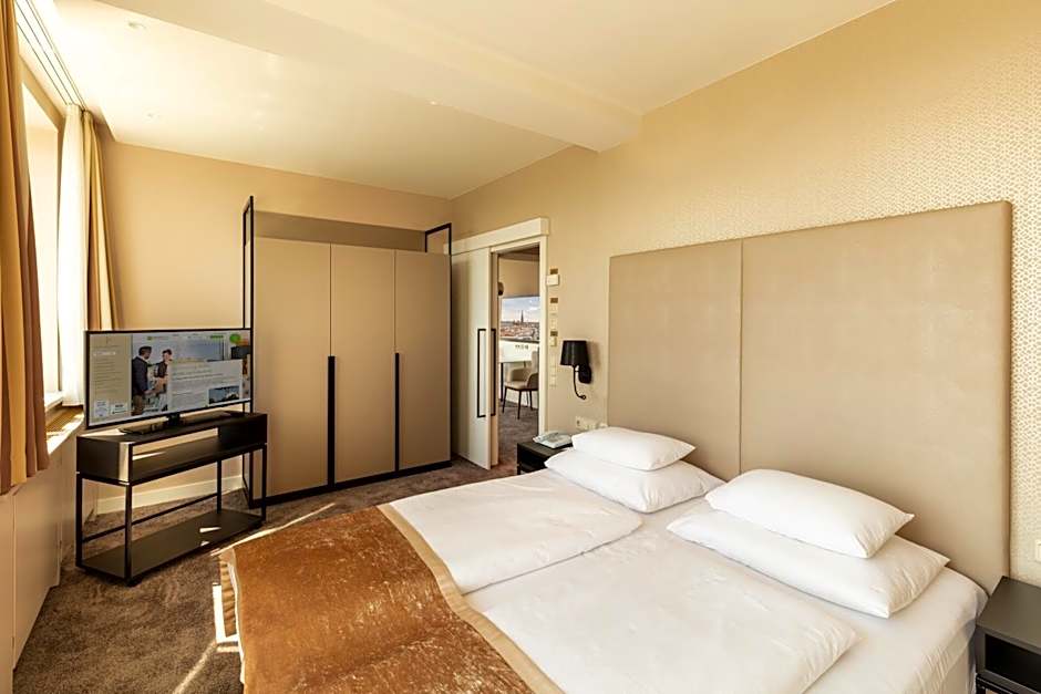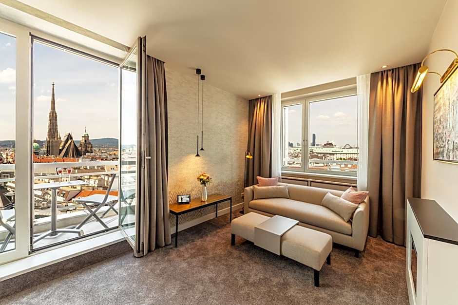 This spacious suite comes with a separate living room and a balcony with views of the St. Stephen's Cathedral. A flat-screen TV with cable and SKY channels as well as a Nespresso coffee machine with free tabs is featured. A tablet with free WiFi access is available in every room.
