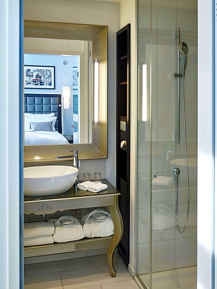 The Superior rooms in Viennese old building flair are furnished with modern interiors and offer a French queen-size bed, a full-size bathroom with tub or shower, free water on the day of arrival, coffee machine and tea bar (1x coffee capsules free of charge upon arrival), free Wi-Fi, and flat-screen TV to create a feel-good ambiance on up to 66 ft² in the middle of Vienna.