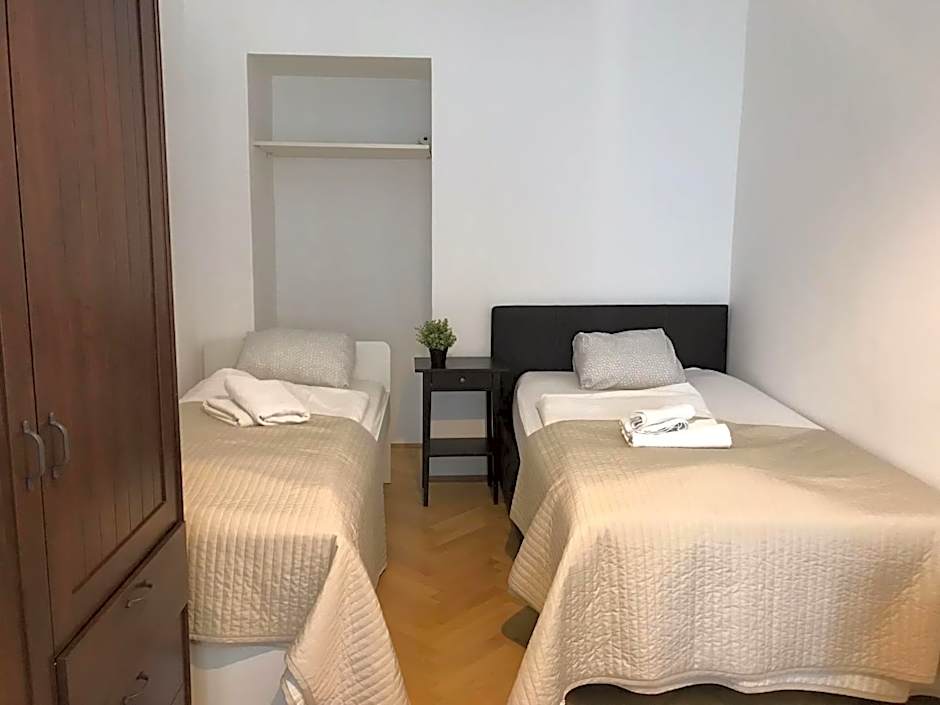 Featuring free toiletries, this twin room includes a shared bathroom with a shower. The twin room features a private entrance, a wardrobe, parquet floors, heating, as well as a flat-screen TV. The unit has 2 beds.