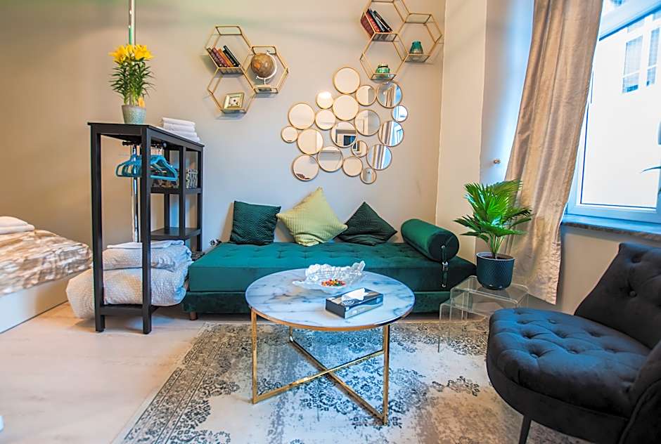 The studio has a private bathroom, air conditioning, a private entrance, as well as a seating area with a flat-screen TV. In the fully equipped kitchenette, guests will find a stovetop, a refrigerator, kitchenware and a microwave. The studio features a TV, a coffee machine, a wardrobe, parquet floors as well as an inner courtyard view. The unit has 2 beds.