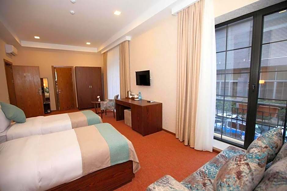 Featuring free toiletries and bathrobes, this twin room includes a private bathroom with a walk-in shower, a bath and a hairdryer. The air-conditioned twin room features a flat-screen TV with satellite channels, a private entrance, soundproof walls, a mini-bar as well as city views. The unit has 2 beds.