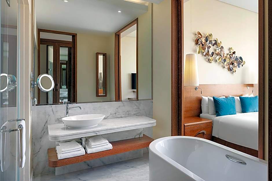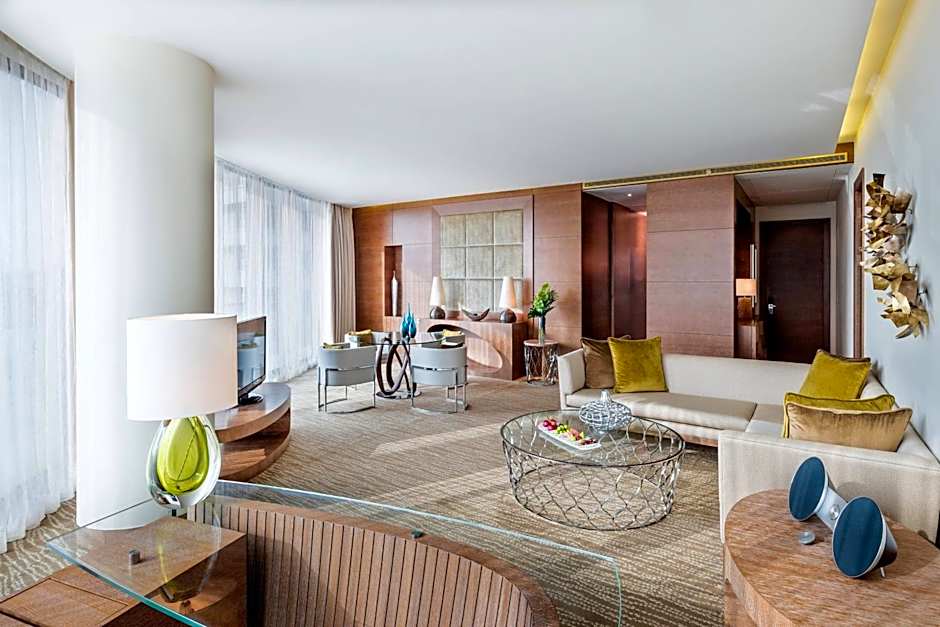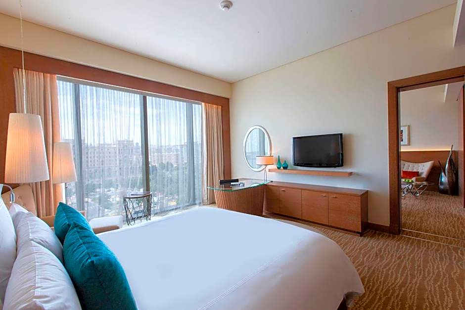 Executive Suites at JW Marriott Absheron Baku feature a generously sized bedroom, complemented by functional closet space and a desk area. The separate living room is perfect for entertaining and relaxing, offering everything you need for a luxurious stay.