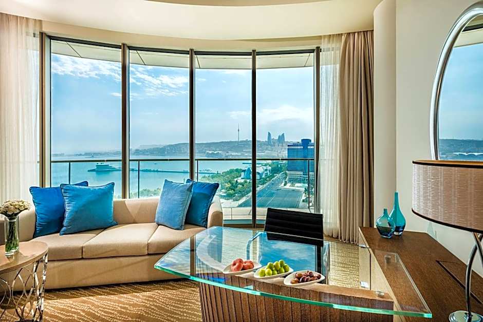 This one-bedroom suite offers the view of the Caspian Sea and scenic city views. Guests of this suite enjoy spacious living area, comfortable bedroom and complimentary tea and coffee facilities. Includes Executive Lounge access with complimentary breakfast and snacks throughout the day, soft and alcoholic beverages, ironing and business services. Also features a cozy seating area with the views of Baku Bay and the Caspian Sea.