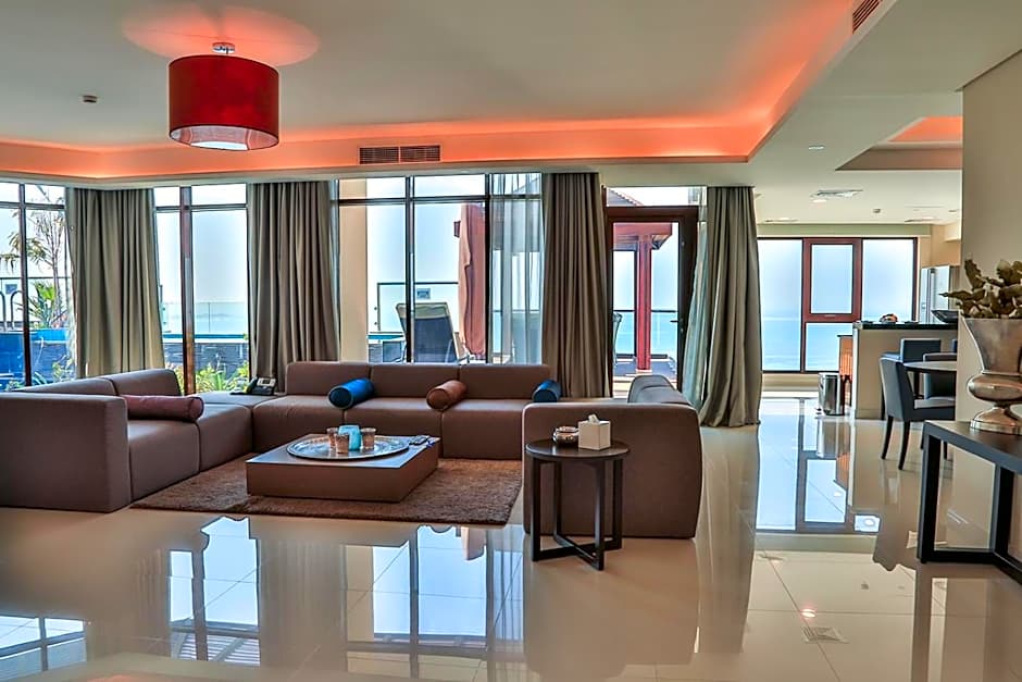 Located on the top floor, the Royal Penthouse effortlessly combines Bahraini heritage with contemporary design. Enjoy unrivaled panoramic views of Arabian Gulf from your private infinity pool and gazebo. It is extra spacious with over 450 square yards of private space. This Penthouse features four bedrooms, all en-suite. The master bedroom has a spa bath as well as stand-alone rain-shower and bidet. Enjoy the latest technology and state of the art appliance fitted throughout the penthouse. The Royal Penthouse gives guests the unique experience of living in an architectural masterpiece.