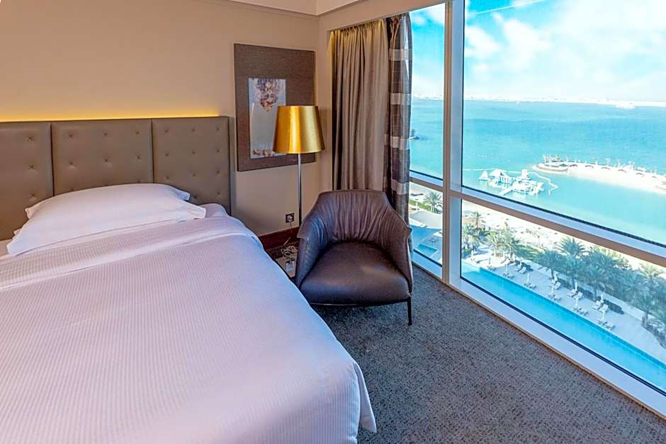 Club King Room Sea view, complimentary Breakfast, Access to Club Lounge, access to private beach, 3 temperature-controlled pools, Olympic swimming pool, kid’s club, kid’s park. The room consists of King Bed, a writing desk, equipped with a marble bath, a rain shower and a bidet. Facilities include daily housekeeping turn-down service, room amenities such as personal in-room safe, tea and coffee making facilities have been added to enhance guest comfort. Club Rooms located on floors 10 to 14 and guests can enjoy exclusive privileges with a high level of personalized service and care. Guests staying in any Club room will benefit free access to our Art Club Lounge, a relaxed and upscale living space, offering stunning sea views on our private bay area with special access to the Art Club Lounge offer: Afternoon snack amenities and evening canapés served daily. Complimentary buffet breakfast serve at Choices All Dining Restaurant. The lounge will be closed during the Holy month and services will be offered instead via in room dining team upon request.