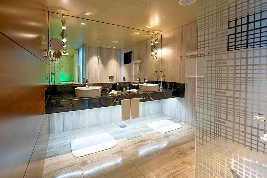 The hotel also offers a variety of dining options. Guests can dine at Rosso, a traditional Italian restaurant on-site. Another option is Wu, which offers a variety of cuisines including Chinese, Indonesian, Japanese, and Korean.