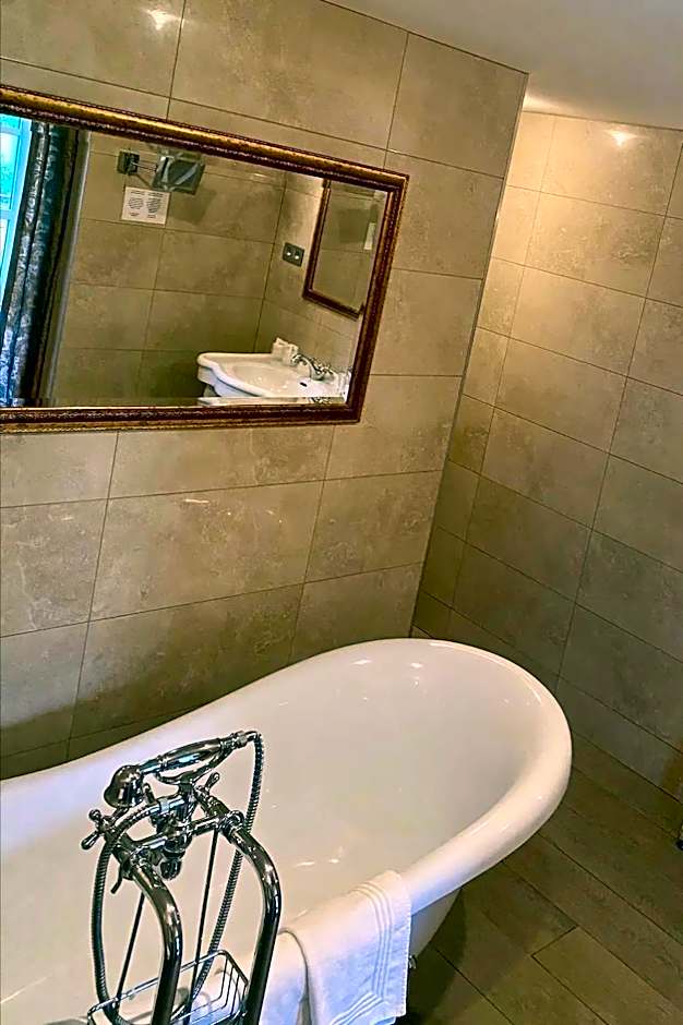 This spacious suite includes a luxurious bathroom with a roll-top bath.