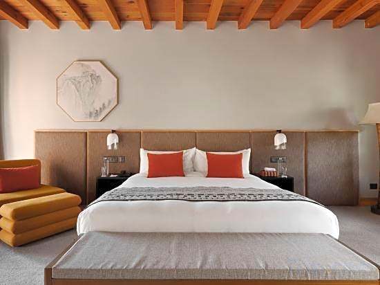is a 5-star hotel in Paro, Bhutan, about from the city center. The address is Satsam Chorten, offering a serene base for Bhutan’s dramatic landscapes. Breakfast is offered to start the day, and refined touches set the tone for a memorable stay.