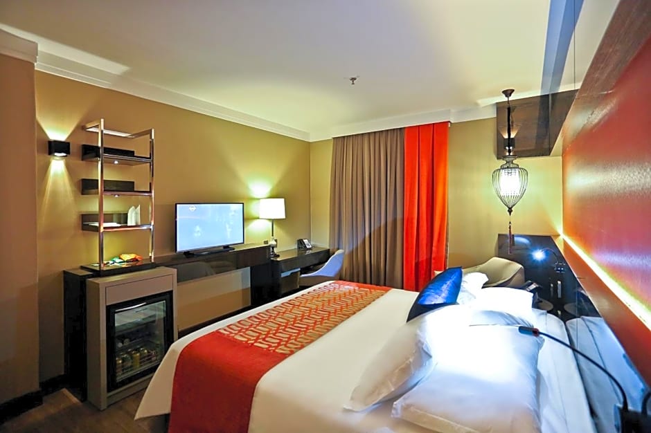 Located in the Classic Tower, this air-conditioned room features a 26'' LCD TV with cable channels, soundproofed windows, a mini-bar, a work desk, a telephone, ironing facilities and a safety deposit box. The private bathroom includes a shower and a hairdryer.