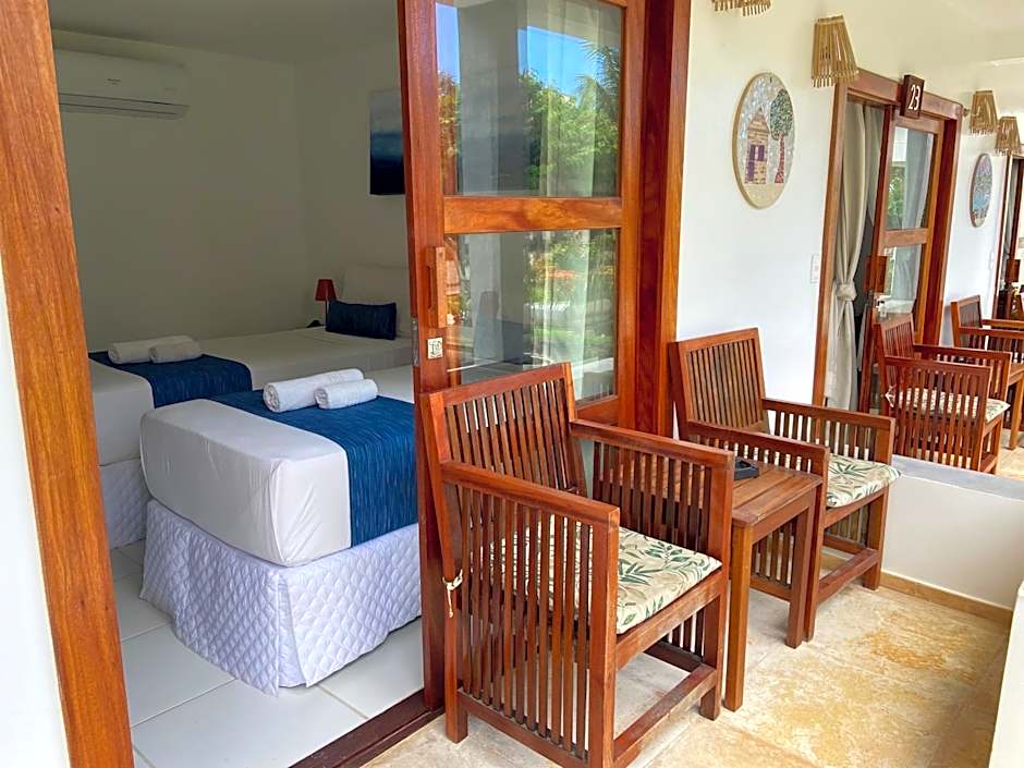 Spacious double room including a private balcony with hammock.