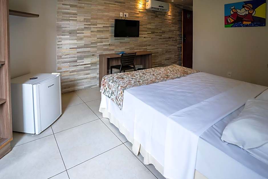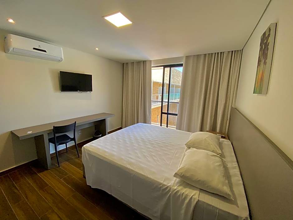 Accommodates up to 2 people. Equipped with air conditioning, cable TV, telephone, mini-bar, hairdryer, wardrobe, Wi-Fi internet and electric shower. It has a balcony and side or pool views (subject to availability on the day). 01 child up to 07 years old can stay in the room free of charge, as long as they are accommodated in the bed of the paying adults.