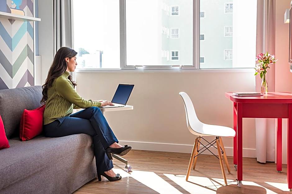 The hotel offers two types of rooms: Studios and Apartments. The Studios have either twin beds or a queen bed and accommodate 2 adults and 1 child. The Apartments have either a double bed or reduced mobility access and accommodate the same number of guests. Smoking is not allowed in any of the rooms. All rooms have a size of 237 sqft.