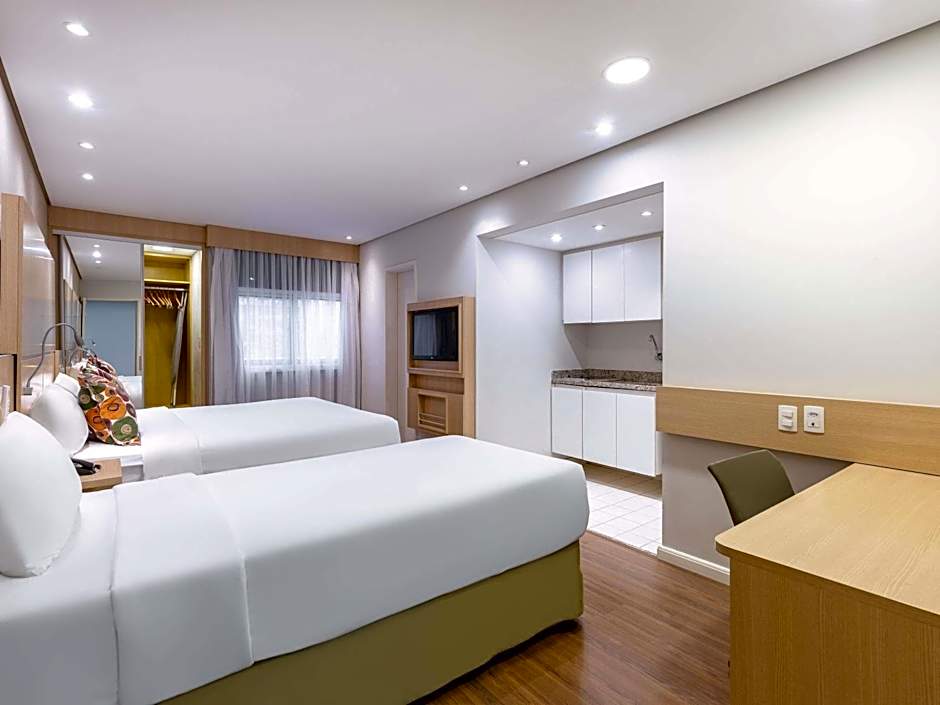 The Mercure Sao Paulo Naçoes Unidas hotel offers a variety of rooms including luxury double rooms with kitchens, superior triple rooms, superior twin rooms, and superior double rooms. All rooms are non-smoking and have a size of 291 sqft. The rooms accommodate different numbers of adults, ranging from 2 in the double rooms to 3 in the triple rooms. The beds in the rooms are either double beds or twin beds, depending on the room type.