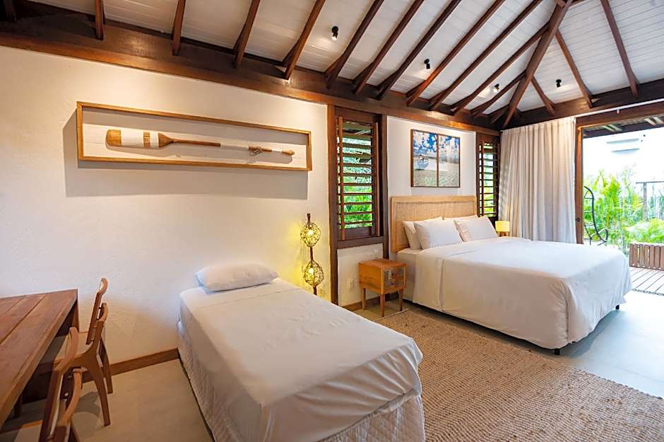 Nestled just from the vibrant heart of Velha Boipeba, offers an inviting retreat on Brazil's enchanting coastline. This five-star paradise pampers guests with its beachfront location, giving you direct access to golden sands and shimmering waters—perfect for unwinding or snorkeling in clear tropical waters (note: snorkeling incurs an extra charge). Start your mornings with a leisurely breakfast on your private patio or balcony, all while soaking in splendid garden views and the gentle sea breeze.