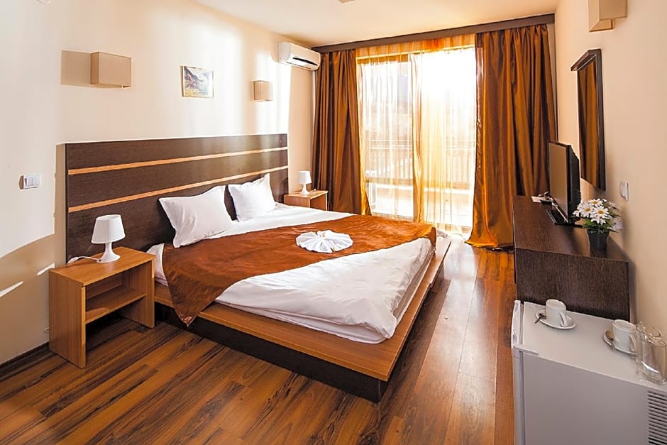 Snow adventures are easy with on-site ski rental and spa/wellness packages to unwind afterward. Families are well-catered with a free kids’ club, while staying connected is simple with free Wi-Fi and a free fitness center. Dining is convenient at the on-site restaurant Ресторант #1, offering a mix of Mediterranean, seafood, steakhouse, international, European, and grill BBQ dishes in a family-friendly, modern setting.