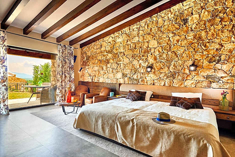 Accommodations range from Junior Suites to villas and larger HolidayHomes, with several options offering scenic views. For example, the Junior Suite with Mountain View and Patio accommodates 2 adults; the Villa Double Room sleeps 2 adults and 1 child with two sofa beds and a queen bed; the Superior Suite accommodates 2 adults and 1 child with a sofa bed and a king bed; the Villa, King sleeps 3 adults with a king bed and a sofa bed; and the Room - 3 King HolidayHome welcomes up to 6 adults and 5 children for bigger group stays.