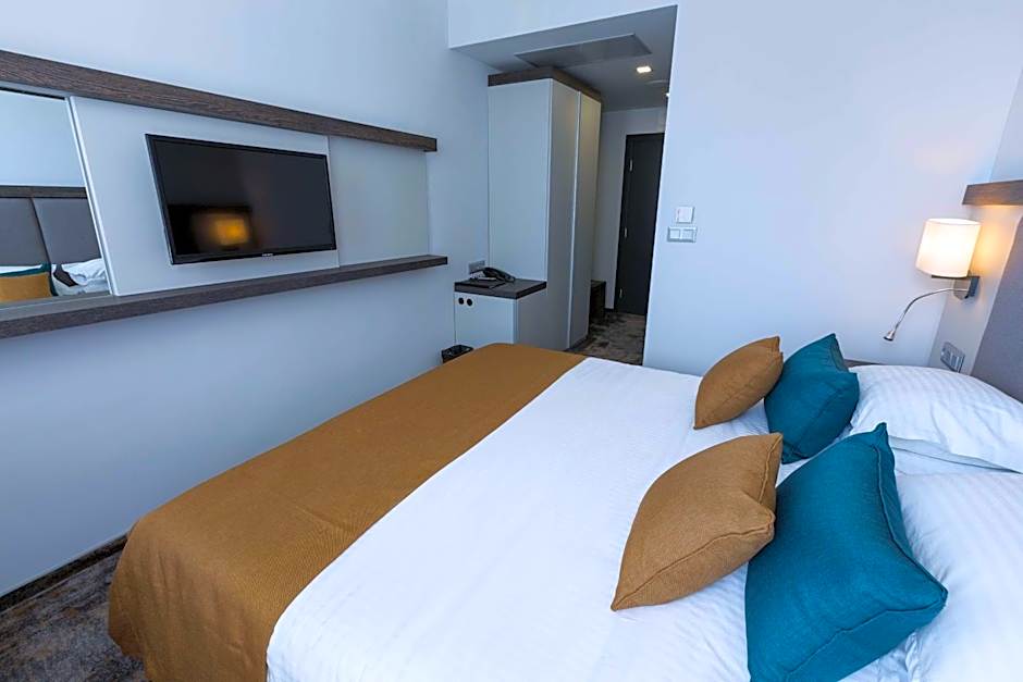 This King Room is 89 ft² and offers king size bed, fully equipped mini-bar, toiletries by Geneva Guild, rain shower, LED TV with more than 50 international channels, high speed WiFi, free safety deposit box, central air conditioning, an electrical kettle set and a balcony.