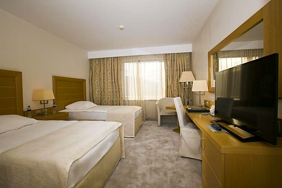 The Hotel Marinela Sofia offers a variety of room types including Standard King Rooms, Deluxe King Rooms, Junior Suites, Vise-Presidential Suites, Standard Twin Rooms, Presidential Suites, and Premium King Rooms. Smoking is not allowed in any of the rooms. The rooms range in size from 323 sqft to 2906 sqft. The occupancy varies between 2 adults and 1 child or 4 adults, depending on the room type. The bed sizes include King size beds, Twin beds, and Sofa beds.