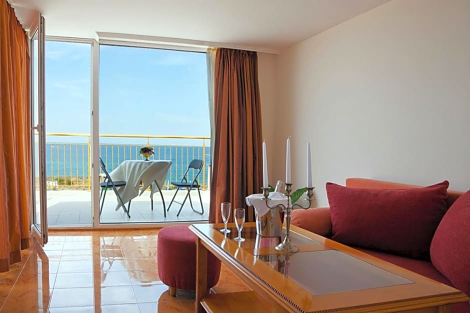 At Hotel Sunny, guests can enjoy a variety of amenities such as a free outdoor swimming pool, a fitness center, and a kid-friendly buffet. The hotel also offers water sports facilities, a sauna, and a tennis court for those looking to stay active during their stay. With a beach, golf course, and a sun deck on-site, guests have plenty of options for relaxation and leisure activities.