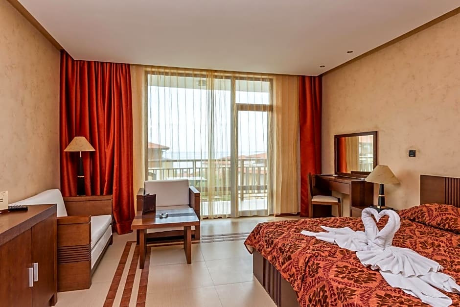 With over 1,700 reviews praising its welcoming atmosphere, friendly service, and fantastic location, the is a top choice for travelers wanting comfort without breaking the bank — prices start at a minimum of 60 EUR. Plus, convenient free Wi-Fi, on-site parking, and a 24-hour front desk make your stay seamless. With amenities like room service, shuttle options (extra), and nearby beaches, this hotel promises a memorable Bulgarian getaway with endless sunshine and seaside charm.