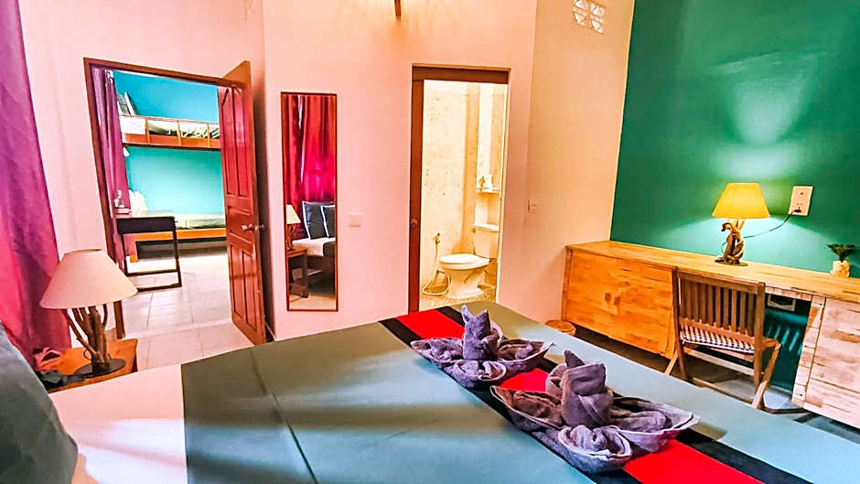 At Au Cabaret Vert hotel, there are Standard Double or Twin rooms available for occupancy of 2 adults with the option of either a twin or queen-size bed. Smoking is not allowed in these rooms. Additionally, the hotel offers Bungalows with a room size of 388 sqft, able to accommodate 2 adults and 1 child. The Bungalows feature a king-size bed and are also non-smoking rooms.