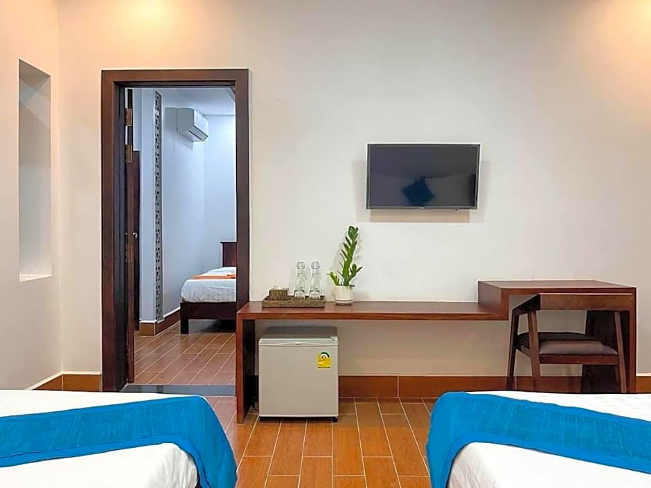 Step inside Angkearboss Villa, where you'll find a world of amenities designed to pamper and please. Dive into the refreshing outdoor swimming pool or let your little ones splash around in the kids' pool—both of which are free for guests to enjoy! Powered up on the strong Wi-Fi, you can kick back in your air-conditioned room with a streaming service like Netflix, or relax on your private terrace while savoring the gorgeous garden views. Don’t forget to take advantage of the complimentary room service and barbecue facilities to make your stay even more delightful!