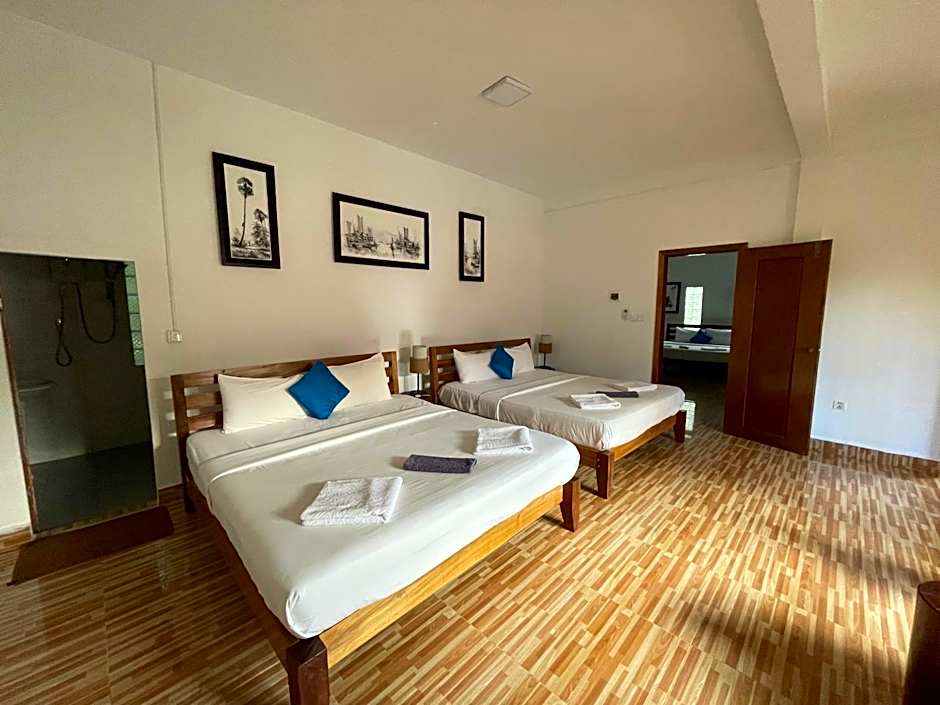 Located on 1st floor, this room with 2 queen size beds offers A/C, fan, minifridge, bathroom with hot water, free wifi. A private terrace features a sofa , table, fan and hammock.