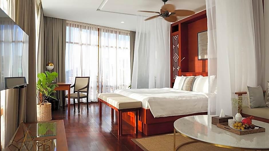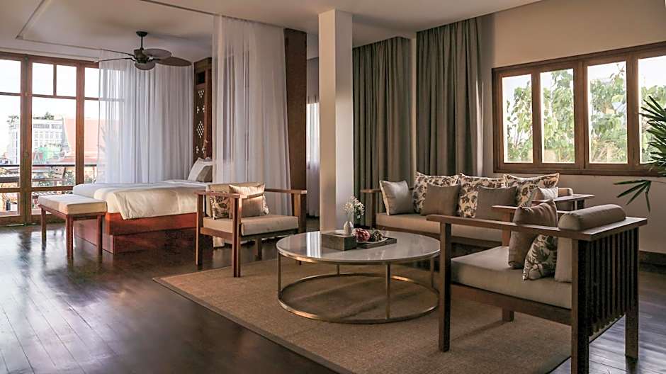 This spacious air-conditioned suite has a private balcony fitted with outdoor furniture and opens up to views of the Ounalom and the Tonle Sap river. The seating area is equipped with a flat-screen cable TV and a desk. Private bathroom includes a hairdryer and free toiletries. This suite sleeps up to 4 adults.